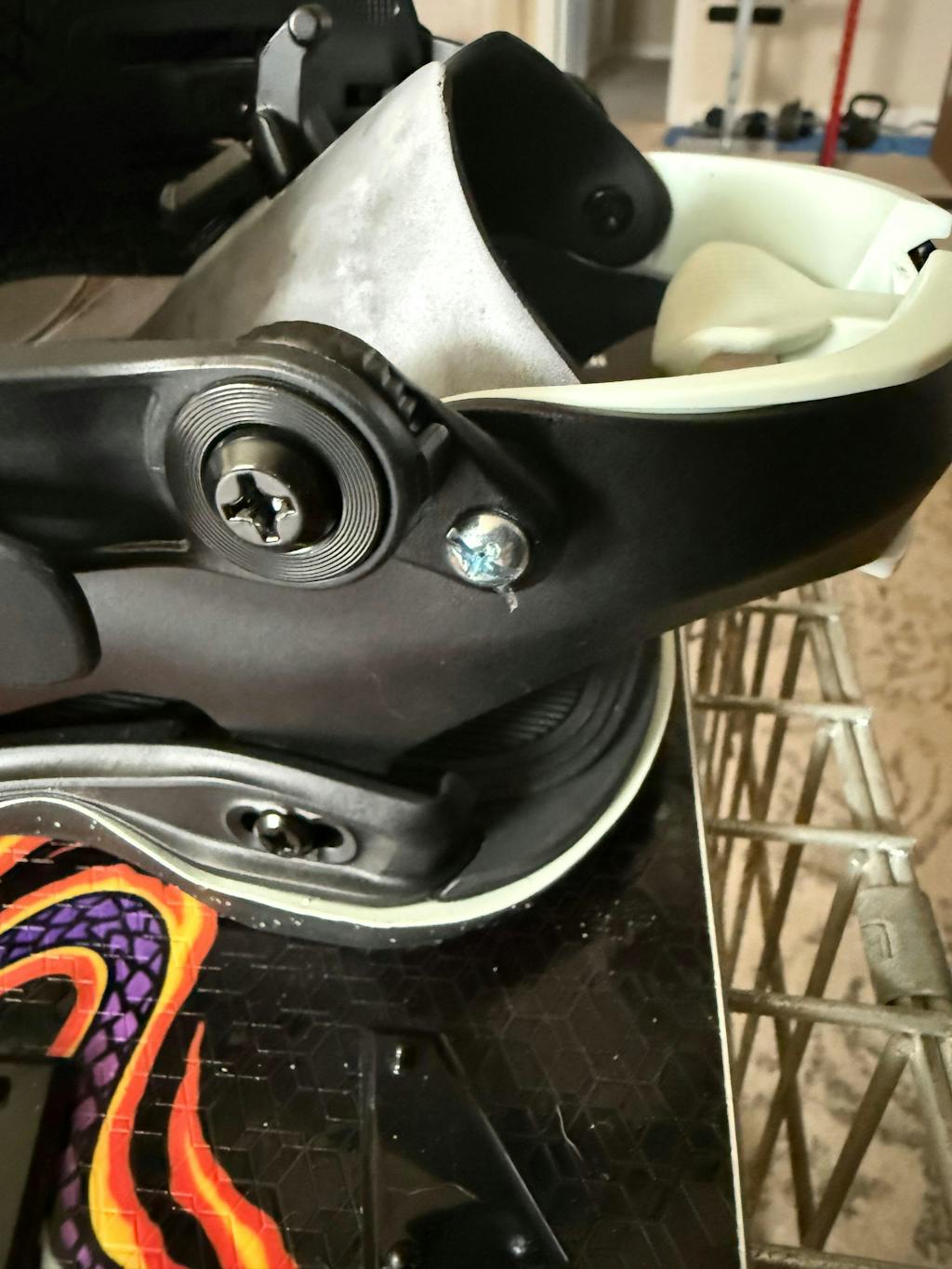 Lost a screw to the high back fist day. Emailed asking to purchase replacement screw and anchor almost 2 weeks ago and have had no reply. For the top of the line katana case stale binding very disappointing. Will be researching for a different company to get bindings from in the future. Had to go to a hardware store to find a screw that would fit. Never miss a day for every other hardware besides this one.
