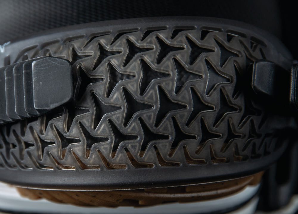 Our most innovative ankle strap ever, built with an open edge 3D Auxetic patten edge overmolded onto a Hytrel® spine for unprecedented levels of locked-in hold and tweakability.