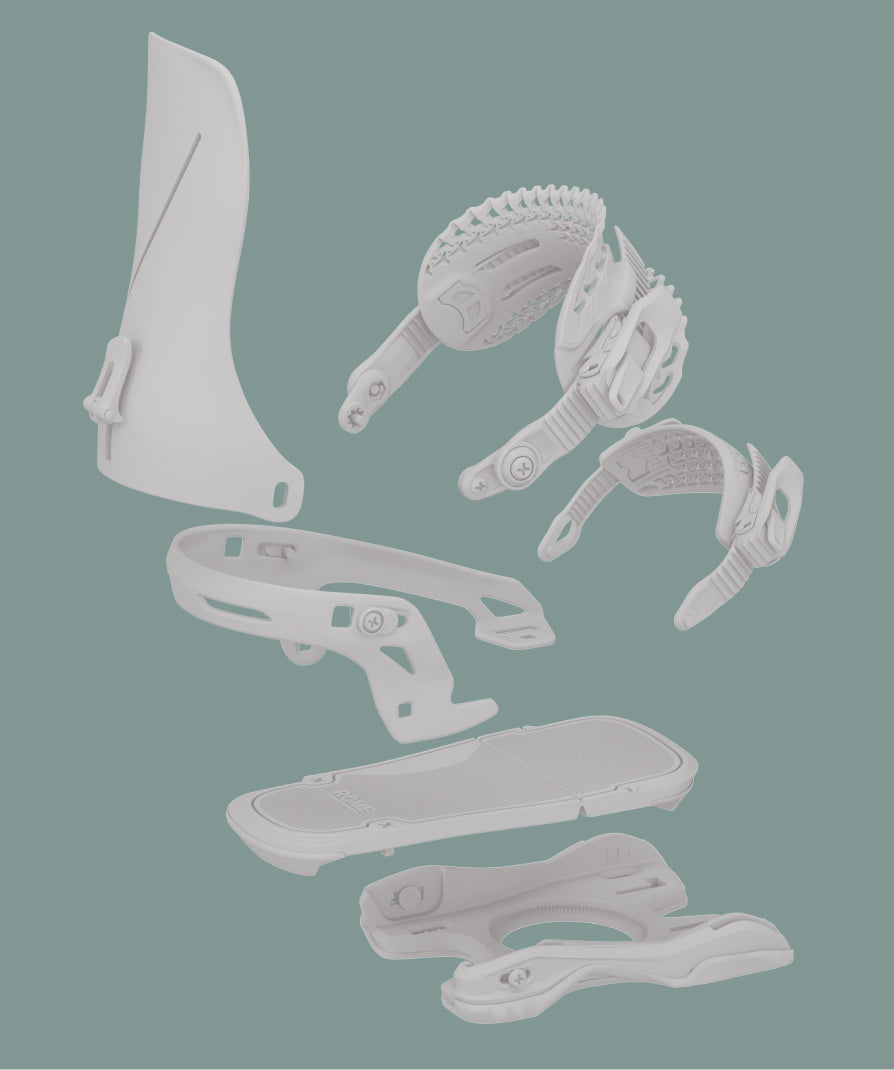 Our highbacks and baseplates are made with of a blend of materials, each different composite construction is designed for a specific flex or level of response.