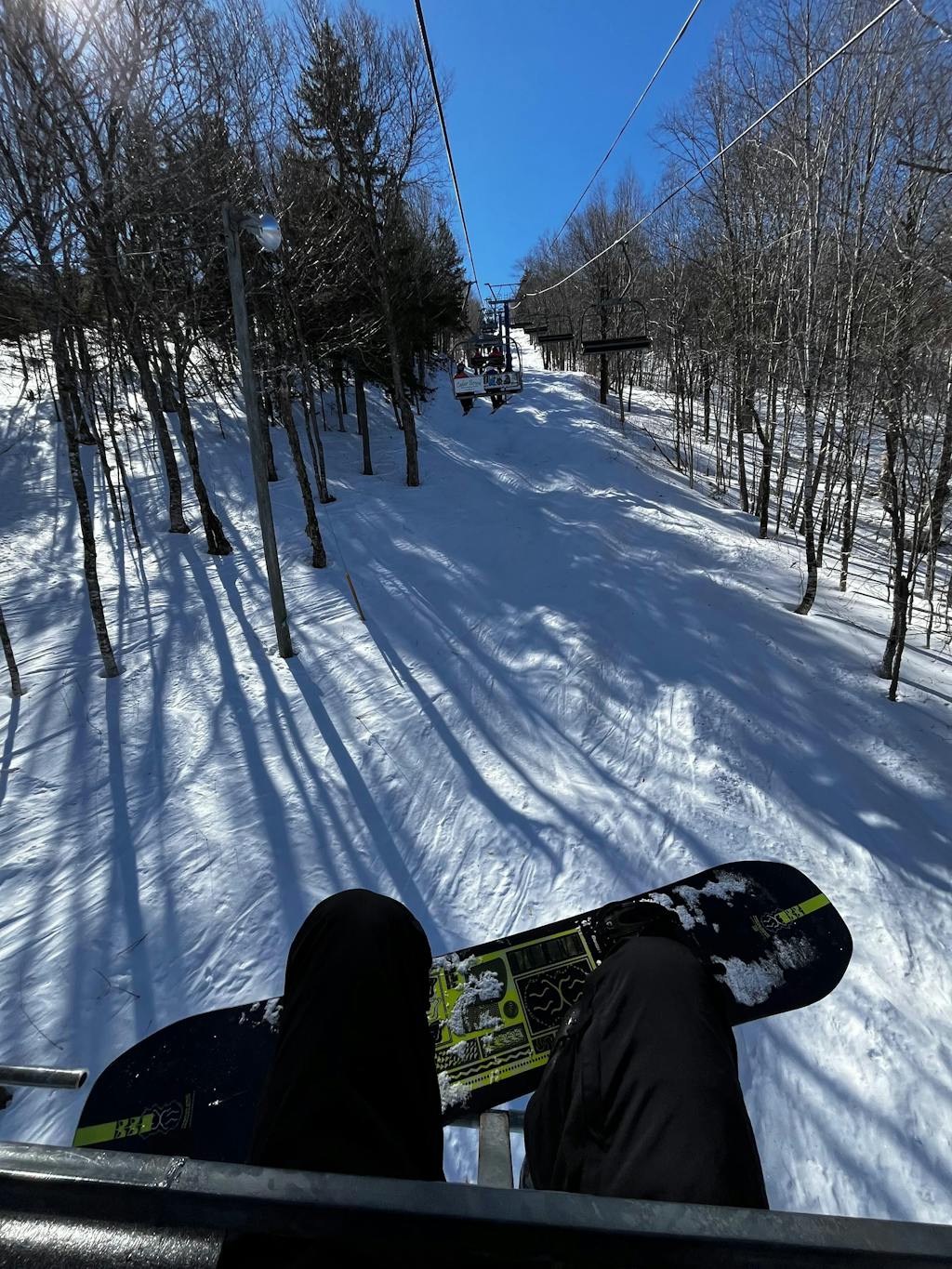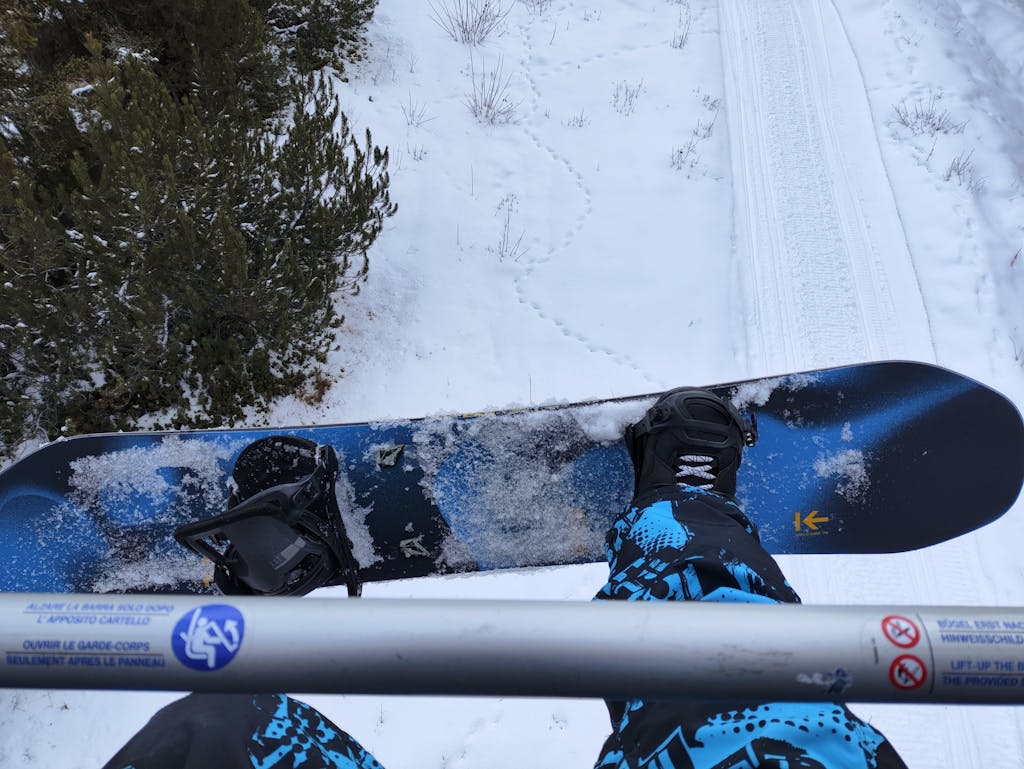 Flat camber between the bindings with rocker outside; smooth flexing and pressable.