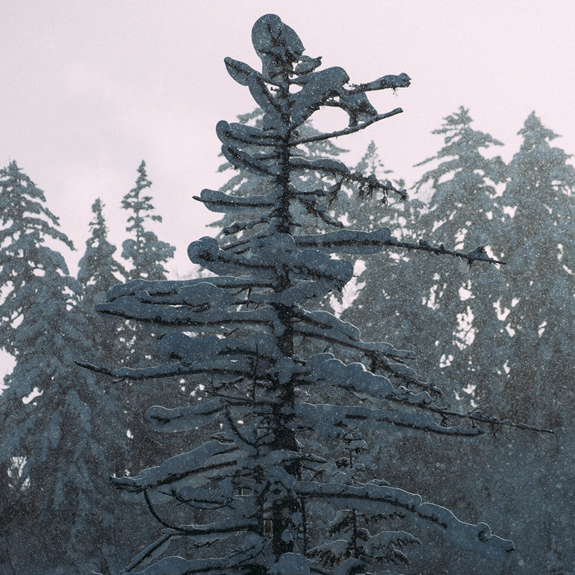 Flat camber between the bindings with rocker outside; smooth flexing and pressable.