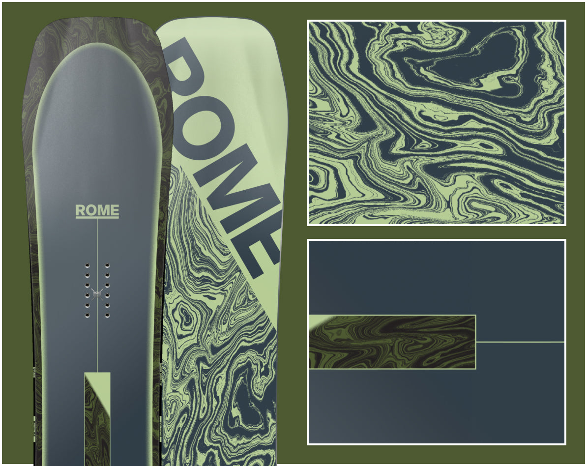Clean, matte printed ink and thin pin-lines on top, with organic texture around the perimeter and wrapping around to the base would feel just as at home on a modern surfboard as it does on this year’s Ravine Family. It only made sense to evoke this look on such versatile boards; as quick and nimble as a short board in the tightest of trees, yet able to open up like a big gun and haul ass down the gnarliest terrain you can get on top of.