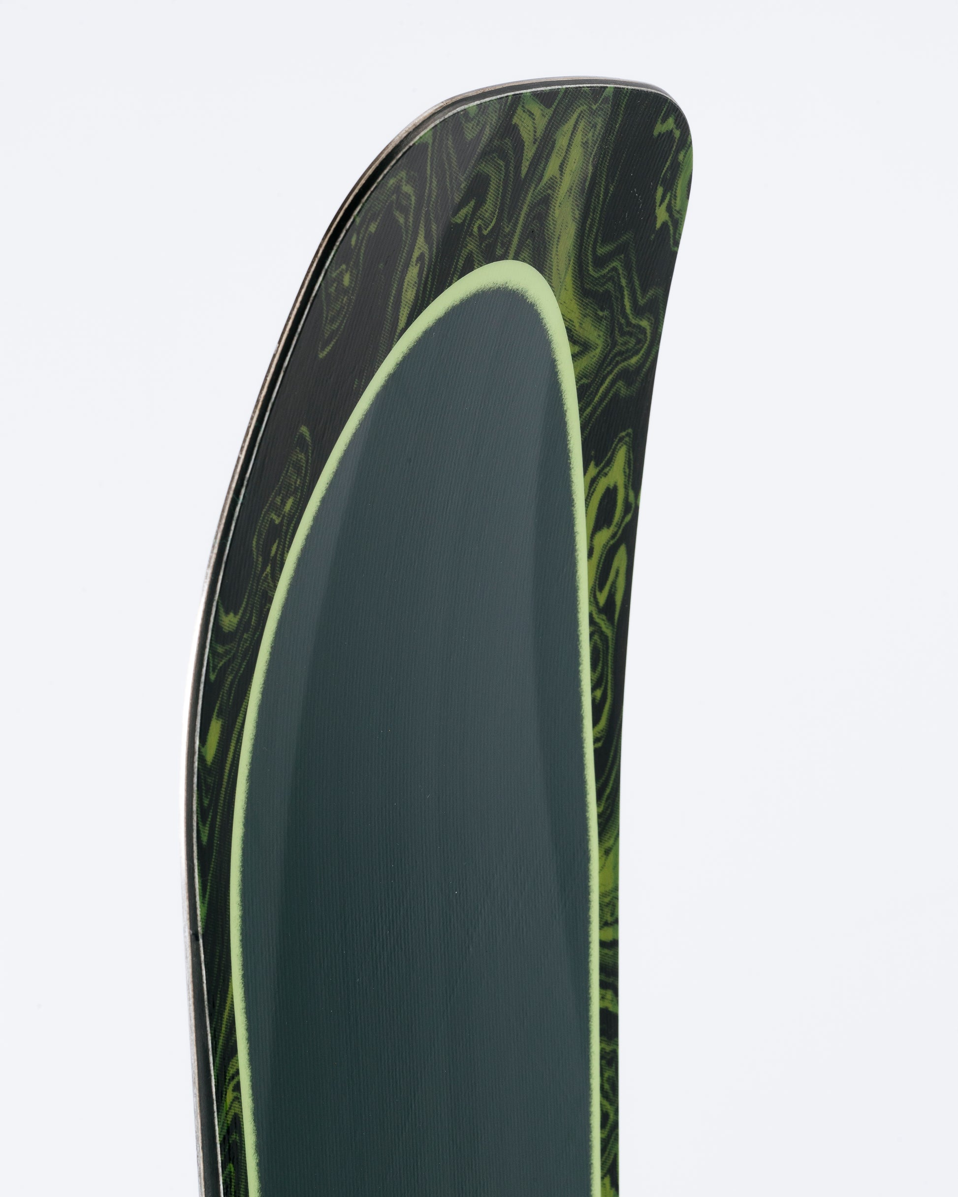Designed for all-mountain prowess and float in the deep. Rockered in the nose, flat under the front foot, with a positive cambered tail.