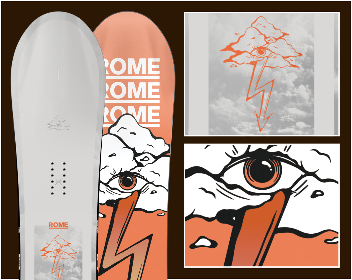 This year’s Stale Collection marks ten years of pro models for Ståle Sandbech and Rome; a massive milestone. Over the course of ten years, we’ve explored endless themes and graphical approaches. A decade later, Ståle’s approach to snowboarding, as well as this graphic, took a simpler path. After several variations on a singular theme, we landed here. With clouds building in the sky, a Storm is brewing. Mixed with a base electrified by a singular lightning bolt, these graphics is poised to stand out whether in the backcountry or laying ruts on local groomers. Ståle and his partner welcomed their first son, Storm, in to the world this past Summer.