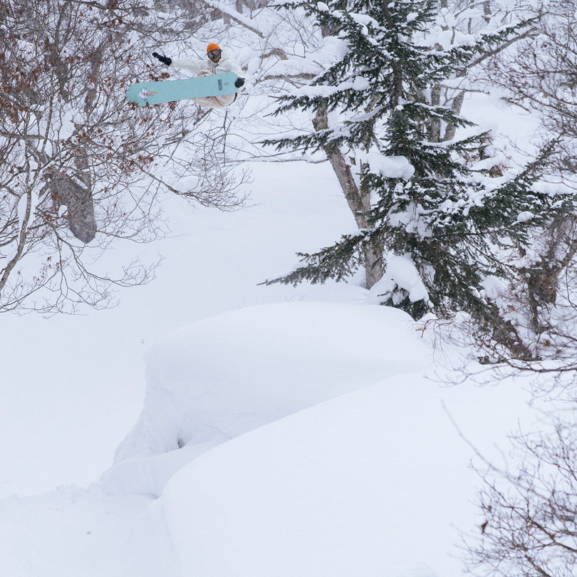 Designed for all-mountain prowess and float in the deep. Rockered in the nose, flat under the front foot, with a positive cambered tail.
